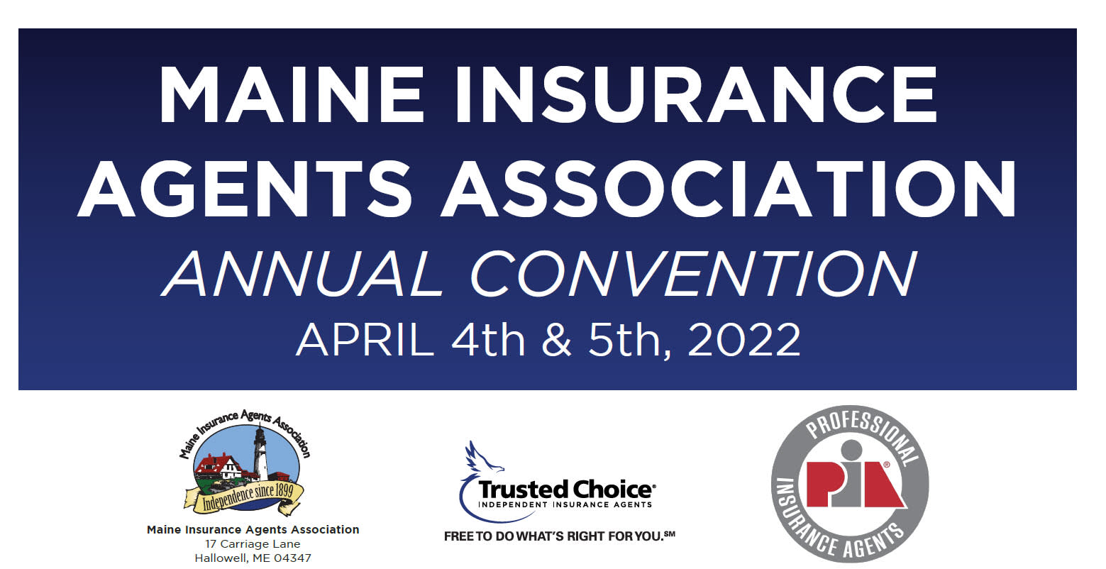 The Maine Insurance Agents Association is pleased to announce that the Annual Convention will take place Monday & Tuesday, April 4 & 5, 2022 at the DoubleTree Hotel in So Portland, ME. You're invited to attend this annual event filled with can't miss content! Visit with our fabulous exhibitors, attend the business meeting, network, earn CE, attend Company night and more! We are so excited to see you!
